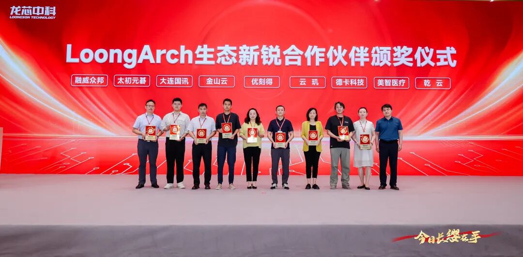 ▲太初(左2)榮獲“LoongArch生態(tài)新銳合作伙伴” 獎(jiǎng)項(xiàng)
